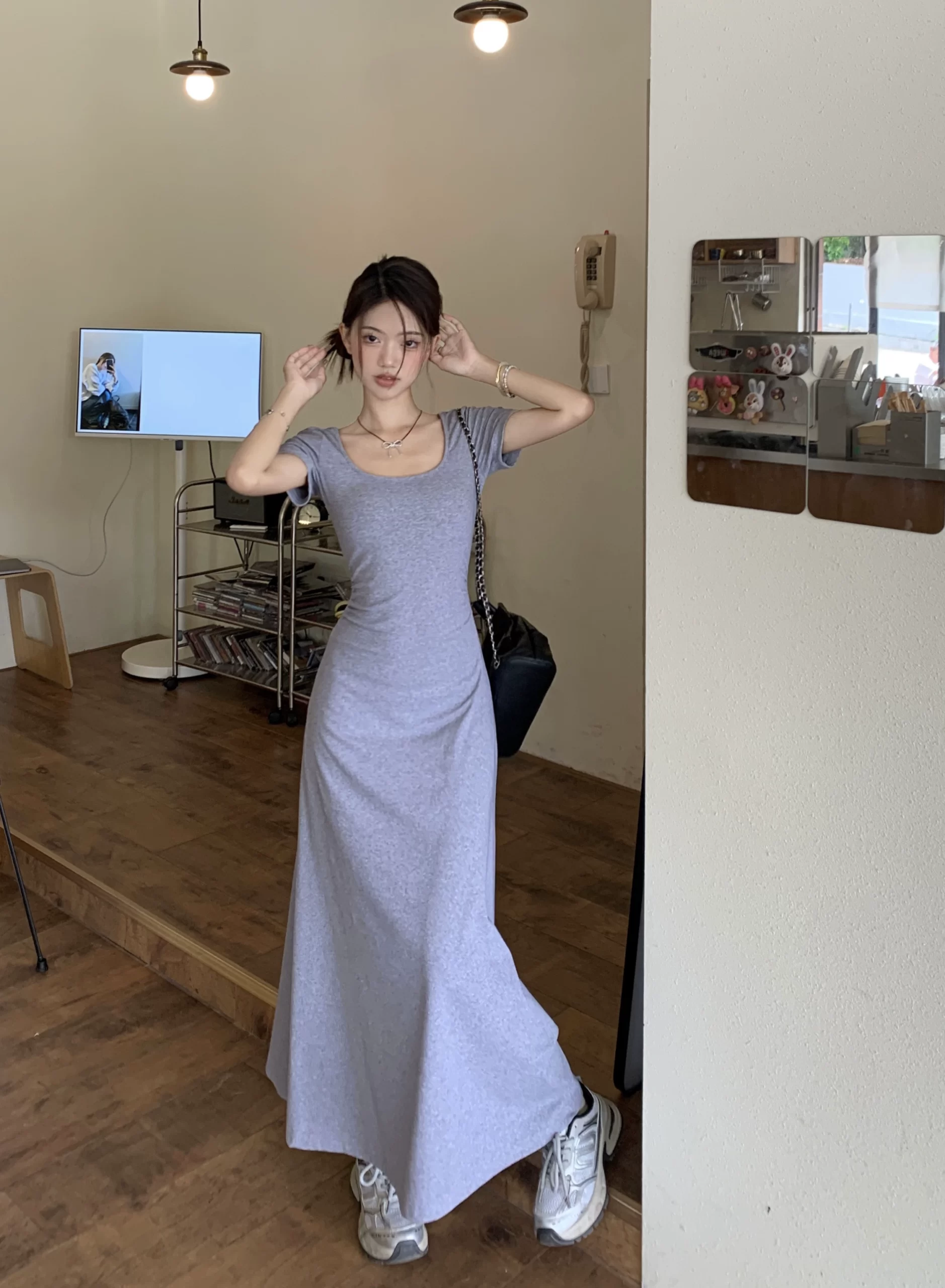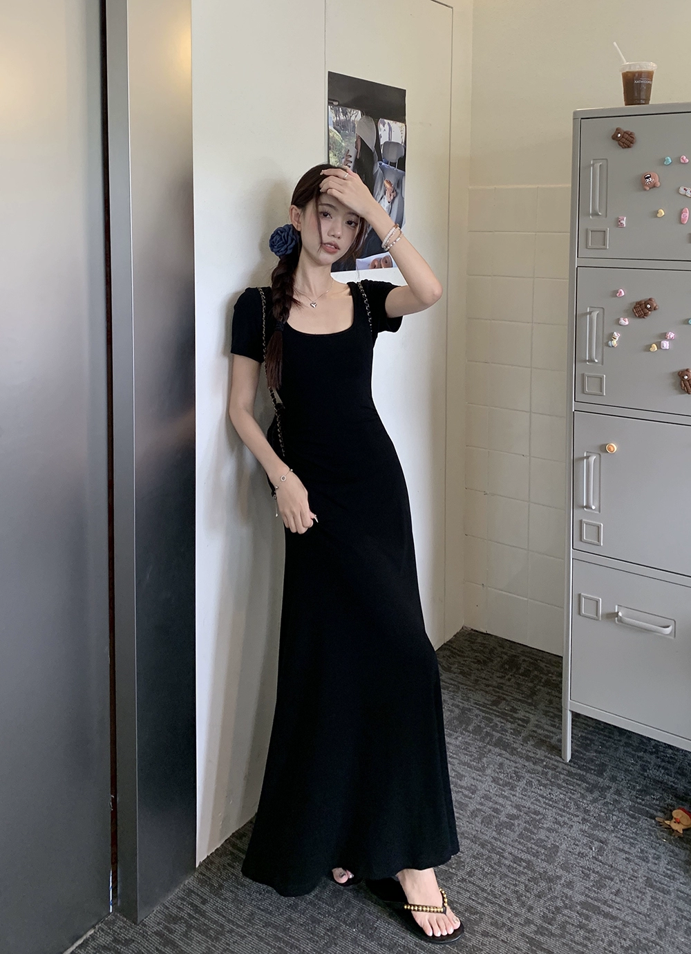 | nameOriginal | Black Square Neck Summer Korean Style Casual Short Sleeve Dress |