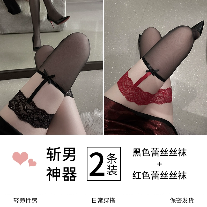 Black stockings, sexy lace one-piece suspenders, leg rings, stockings, women's stockings, half knee-high, ultra-thin summer suspenders