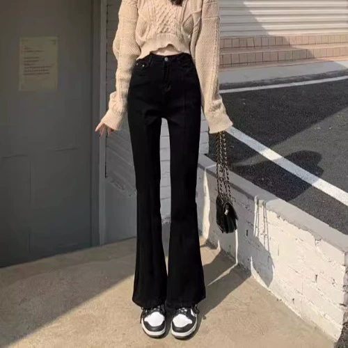| nameOriginal | Black straight high waist slightly flared wide leg jeans |