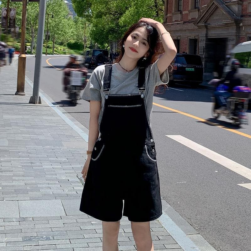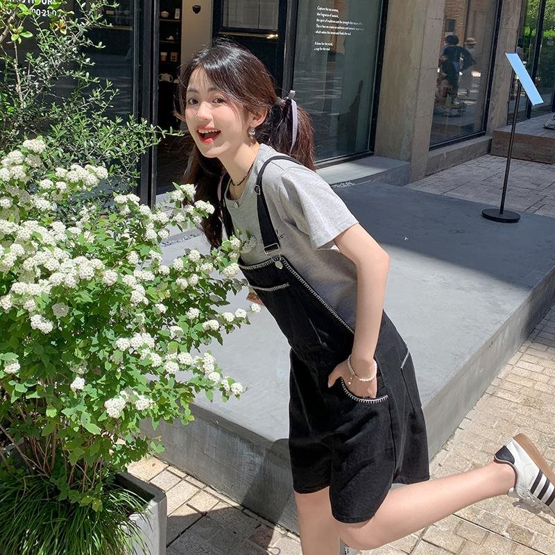 | nameOriginal | Black Strap Pants Women's 2024 Summer New College Style Small Style Fashion Straight Tube Age-reducing Slim Short Pants |