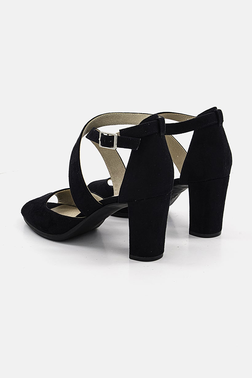 Black Strappy Heeled Sandals for Women in Micro Suede.