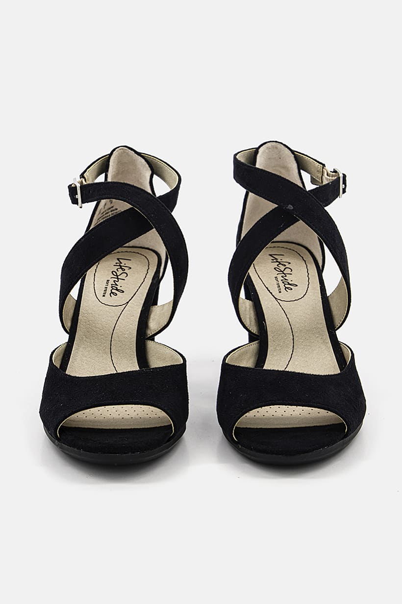 Women Wide Allison Micro Suede Strappy Heeled Sandals, Black
