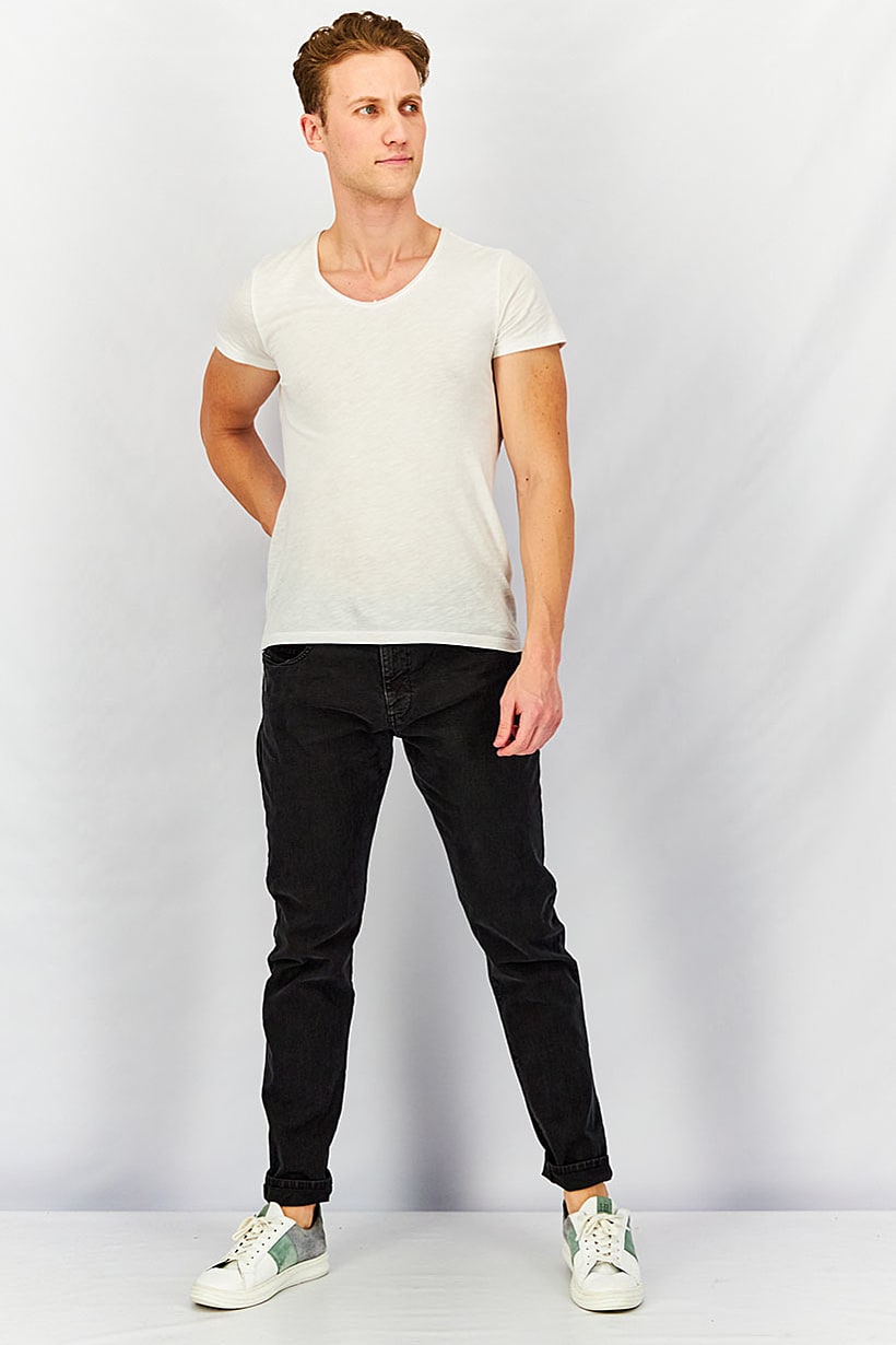 | descriptionOriginal | Bottom Hem : Straight, Care : Machine washable, Fit : Slim fit, No of pockets : 5, Size shown : Inches, Stretch Type : Stretchable, Types of Jeans Rise : Mid rise, Bottom Closure : Button, Bottom Style/Pattern : Belt loops, Disclaimer : Product color may slightly vary due to photographic lighting sources or your monitor settings., Fabrics : 97% Cotton, 3% Elastane, Pattern & Print : Plain/Solid, Color Family : Black, |