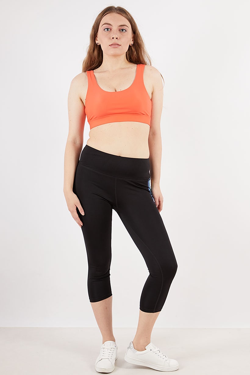 Black Striped Capri Leggings for Women’s Sports Fit.