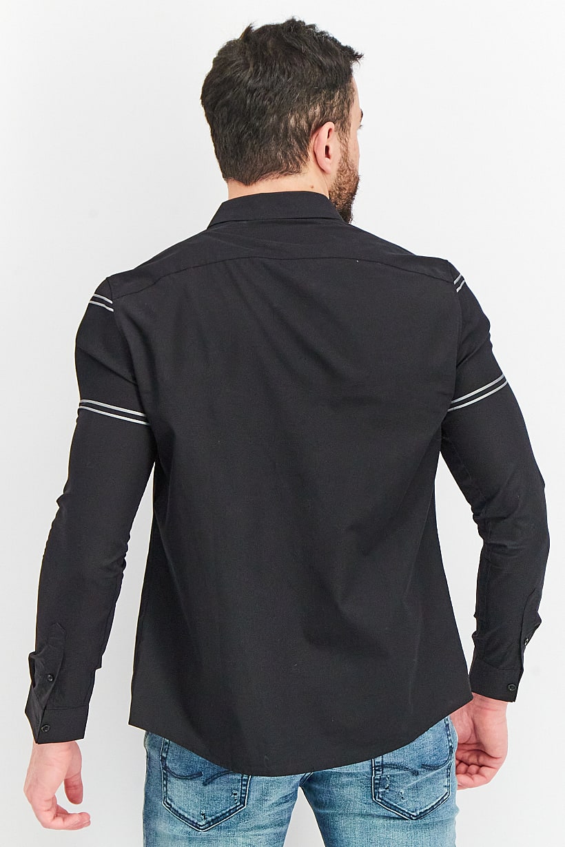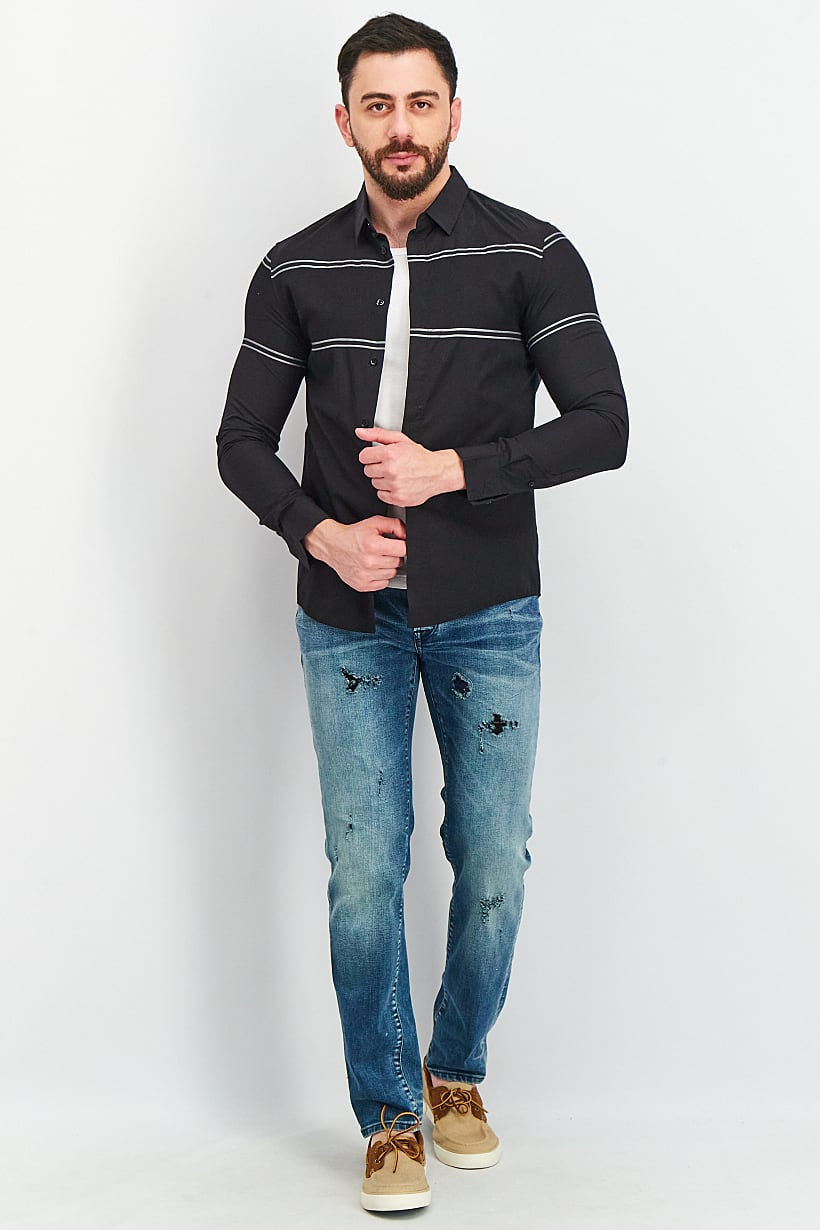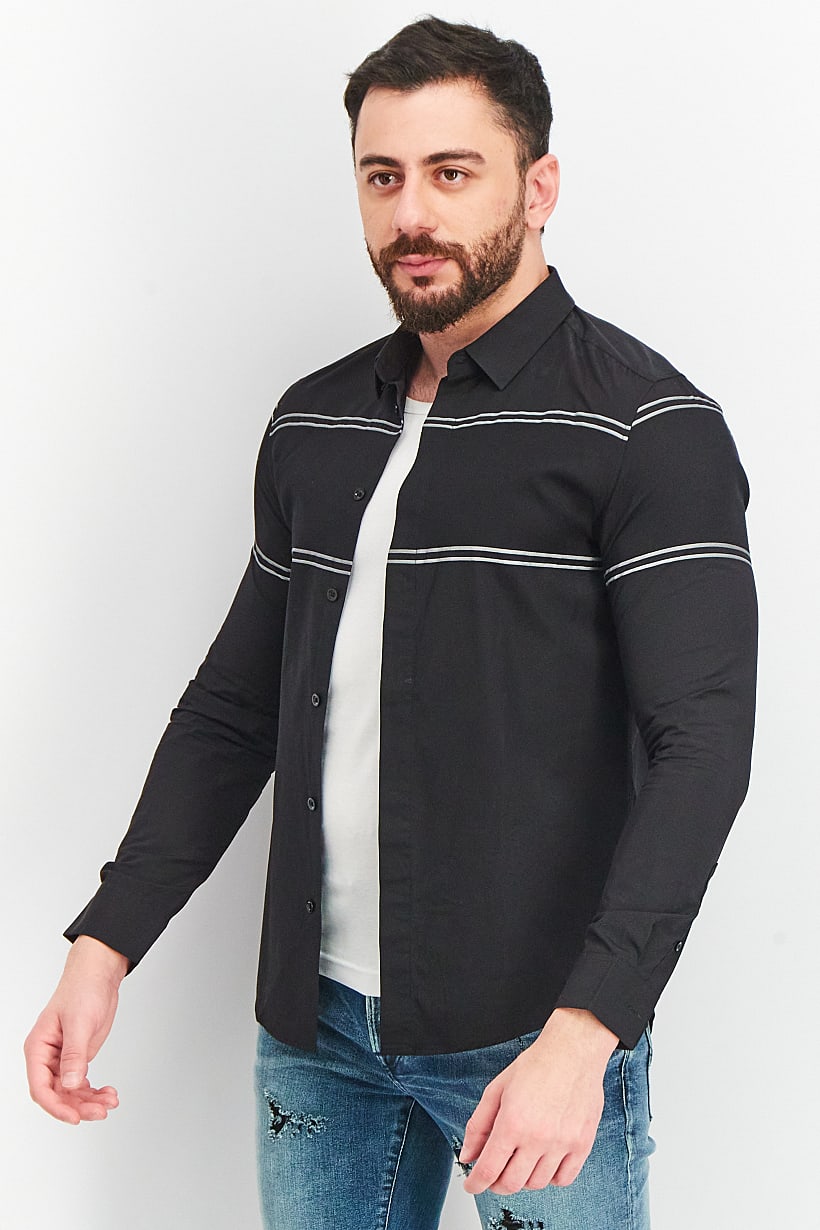 | nameOriginal | Men Regular Fit Long Sleeve Stripe Casual Shirt, Black |