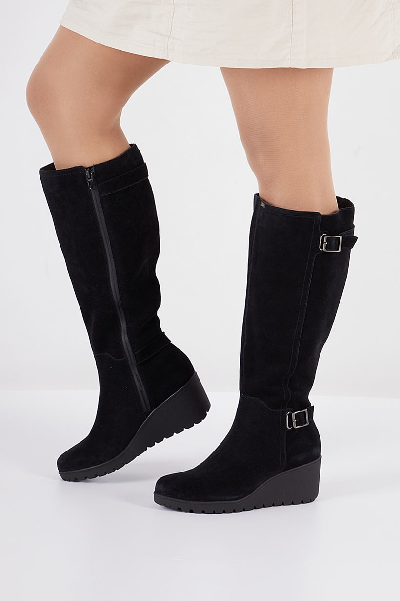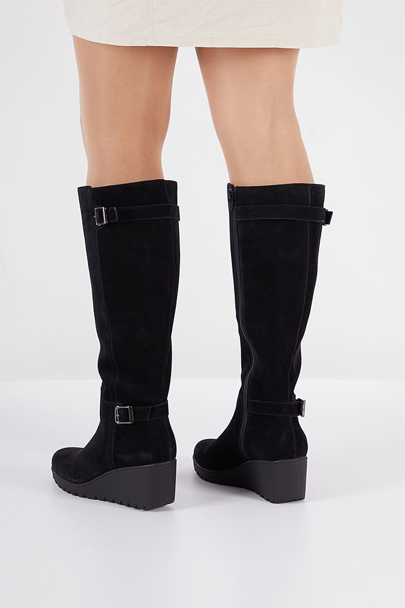 | sub_Categories | Shoes, Boots, women sannaa side zip suede wide calf boots black |
