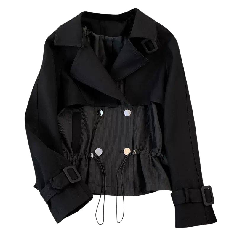 | nameOriginal | Black suit collar coat women's short waist 2024 early spring and autumn new Hepburn trench coat jacket |
