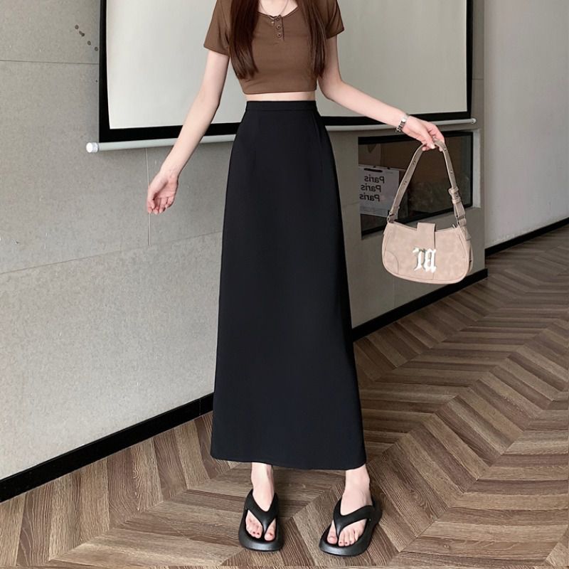 | nameOriginal | Black Suit Skirt Women's Spring 2024 New Dipped High Waist Split Long Skirt Slim-fit Straight Hip Skirt |