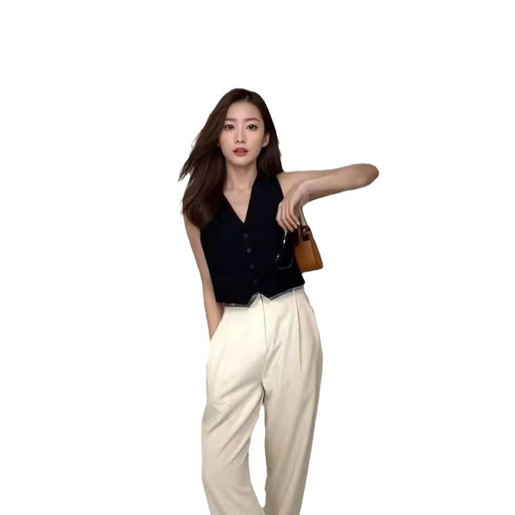 Black Suit Vest Coat Women’s 2024 Summer New V-neck Short Ware Vest Sleeveless Stacked Top