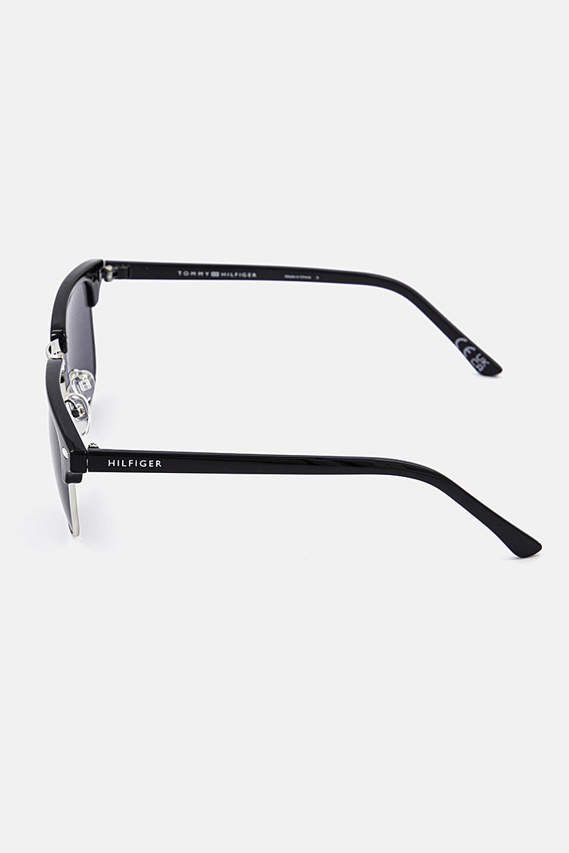 This product boasts a sleek black frame with a full rim design, complemented by black lenses that provide protection against harmful UV rays. The lenses are made of high-quality acetate material, ensuring durability and clarity. Additionally, the sunglasses feature adjustable nose pads for a comfortable fit. The overall color family of this product is black, making it a versatile and stylish accessory.