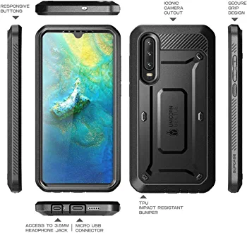 SUPCASE Unicorn Beetle Pro Series Designed for Huawei P30 Case (2019 Release) Full-Body Dual Layer Rugged with Holster & Kickstand(Black)