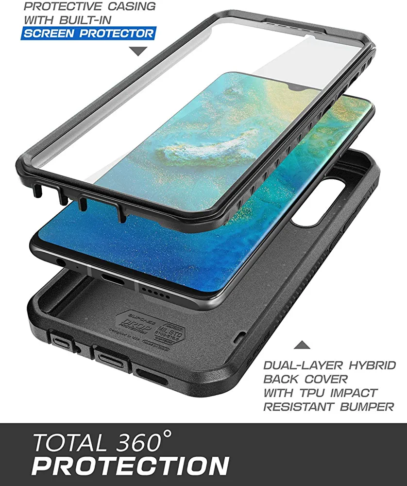 Black SUPCASE for Huawei P30 (2019) with Holster & Kickstand. Dual Layer Rugged Full-Body Design.