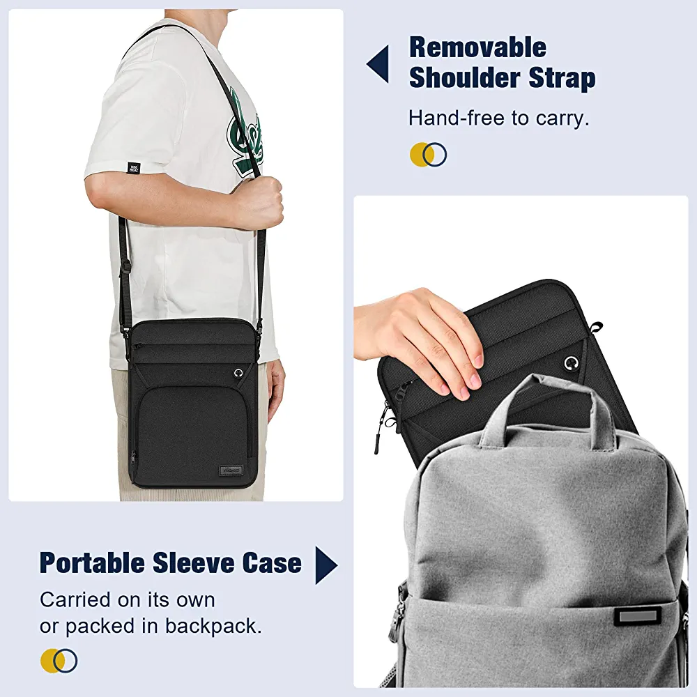 | nameOriginal | MoKo 9-11 Inch Tablet Sleeve Bag, Fits iPad Air 5 10.9" 2022, iPad 9/8/7th 10.2, iPad 10th 10.9, iPad Pro 11 M2 2022-2018, Multifunctional Bag with Shoulder and Headphone Port, Black |