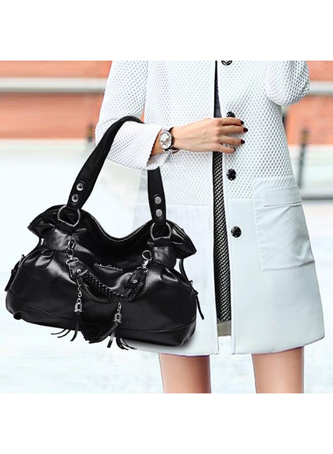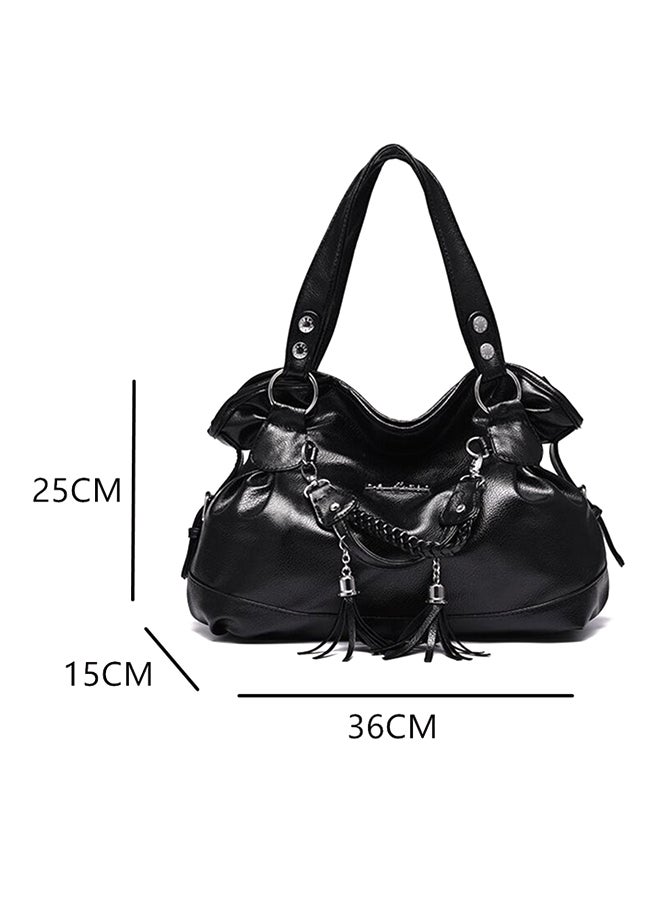 Introducing our stylish and versatile Tassel Hobo Bag in classic black. This bag is the perfect accessory for any fashion-forward individual who wants to add a touch of sophistication to their outfit. The bag features a spacious main compartment that can easily fit all your daily essentials, including your phone, wallet, keys, and makeup. The bag is made from high-quality materials that are durable and long-lasting, ensuring that it will be a staple in your wardrobe for years to come. The standout feature of this bag is the tassel detailing, which adds a playful and trendy touch to the overall design. The adjustable strap allows you to wear the bag comfortably on your shoulder or across your body, making it perfect for any occasion. Whether you’re running errands or going out for a night on the town, the Tassel Hobo Bag in black is the perfect accessory to complete your look.