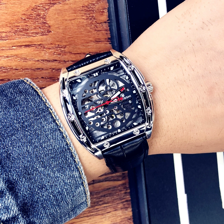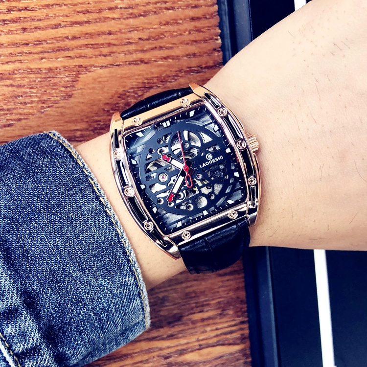 | nameOriginal | Black technology watch men's barrel square hollow fully automatic mechanical watch waterproof trendy men's watch creative product 1 |