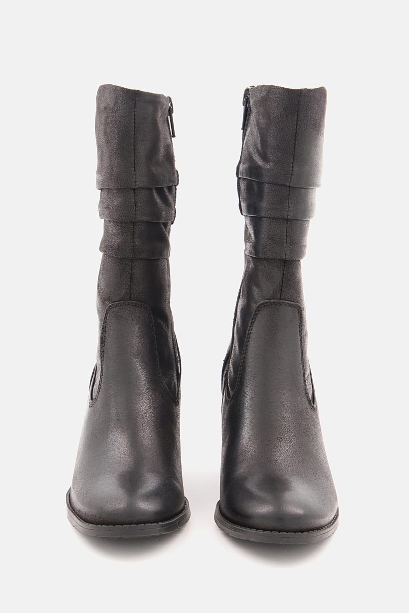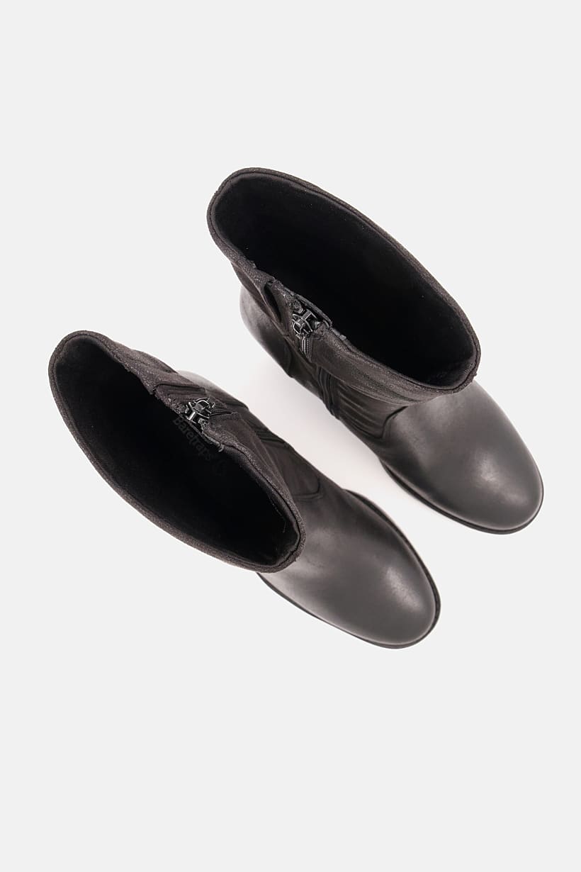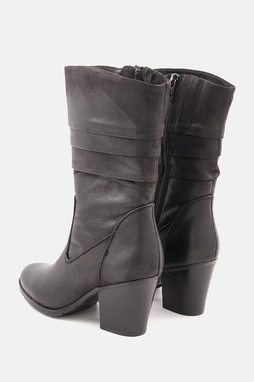 Black Textured Leather Boots with Side Zip for Women.