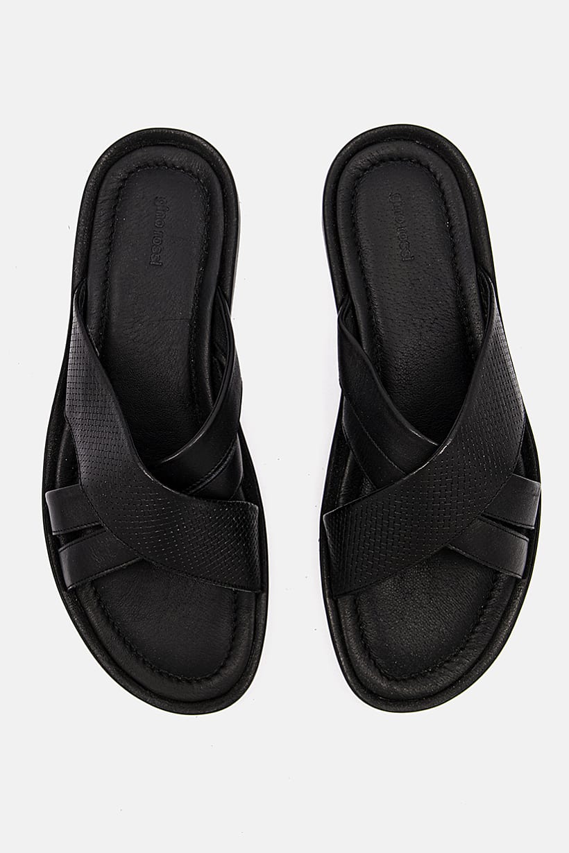 | nameOriginal | Men Textured Leather Slip On Sandals, Black |