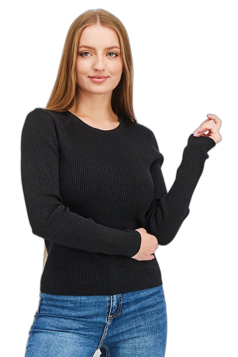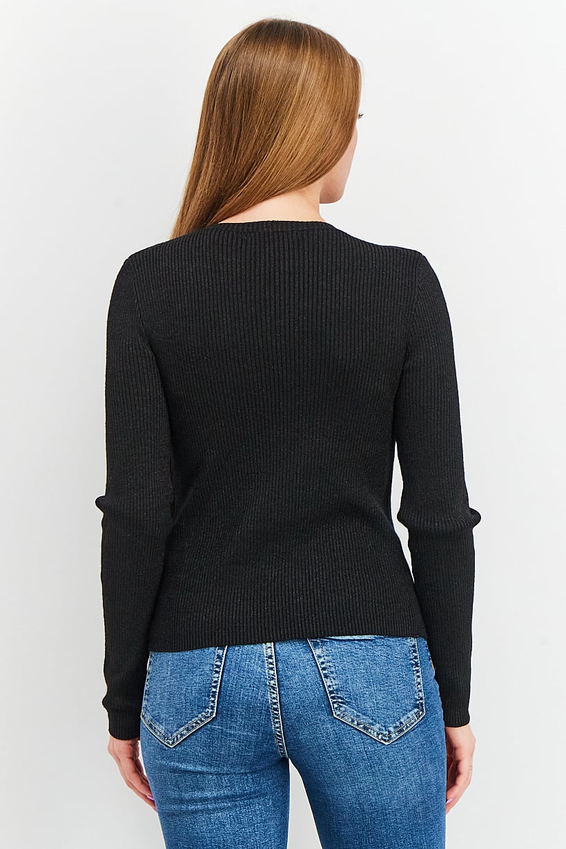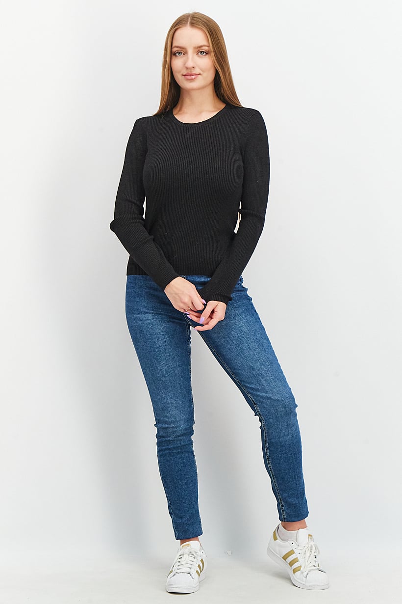 Black Textured Long Sleeve Top for Women with Round Neck.