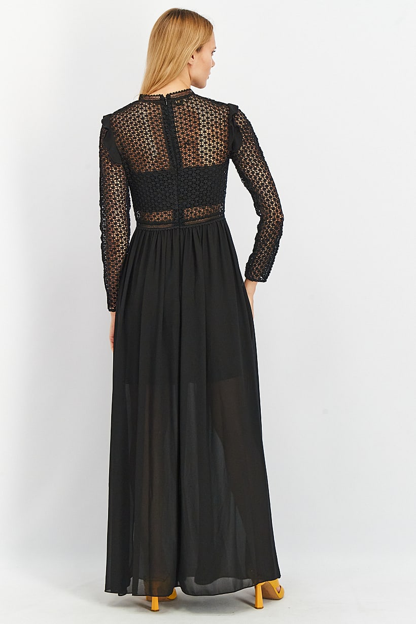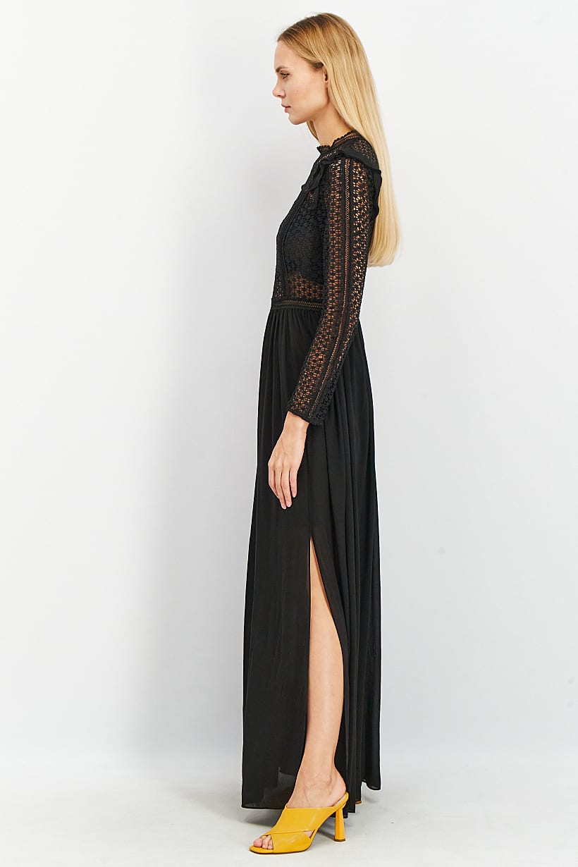 Black Textured Maxi Dress with Long Sleeves for Women.
