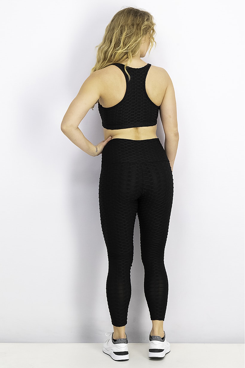 | nameOriginal | Women Textured Sports Top And Tights Set, Black |