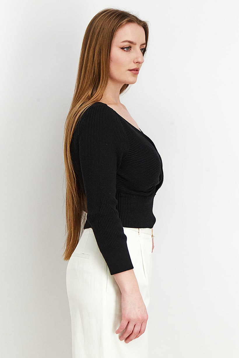 | nameOriginal | Women V Neck Floyd Wrap Textured Sweater, Black |