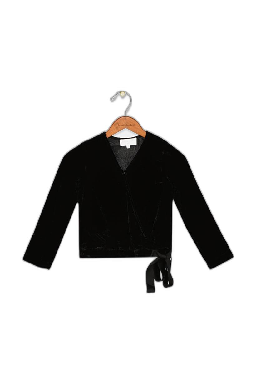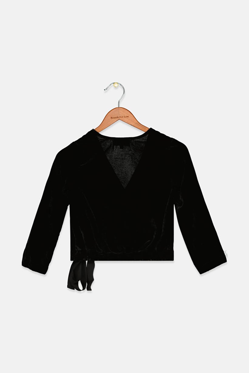 Black Textured Wrap Top for Girls with Surplice Neckline.