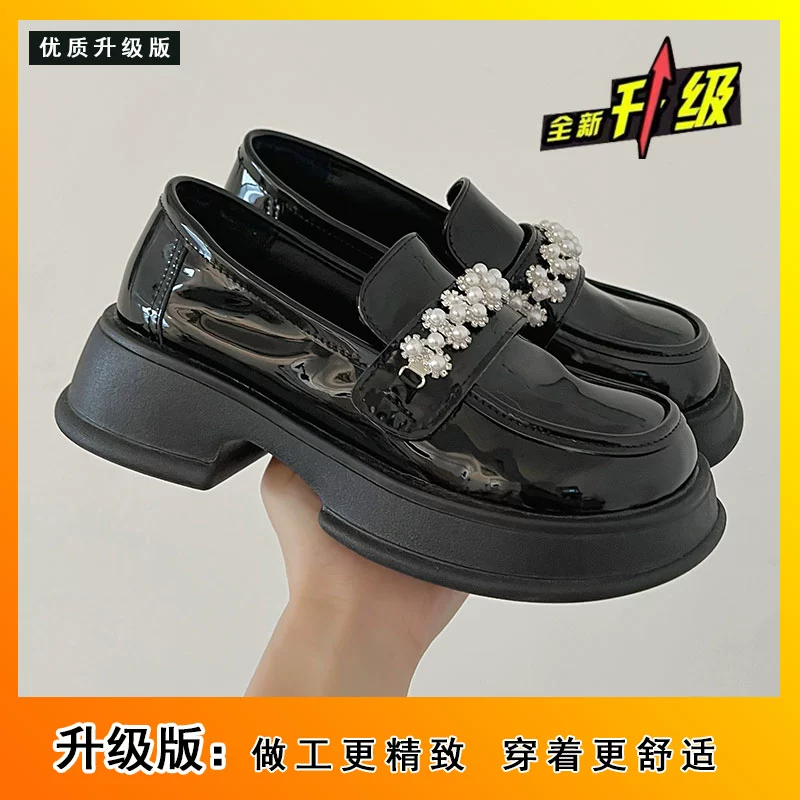 | nameOriginal | Black thick sole French Mary Jane shoes for women 2024 new summer with skirt retro British style small leather shoes |