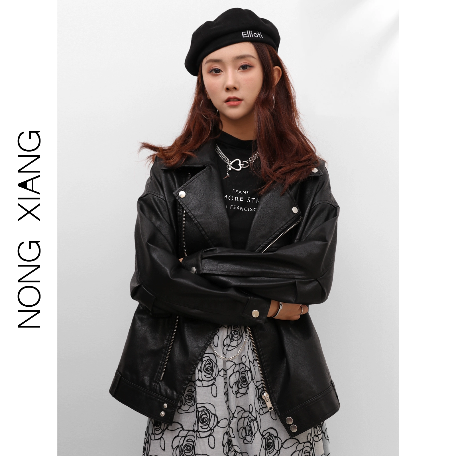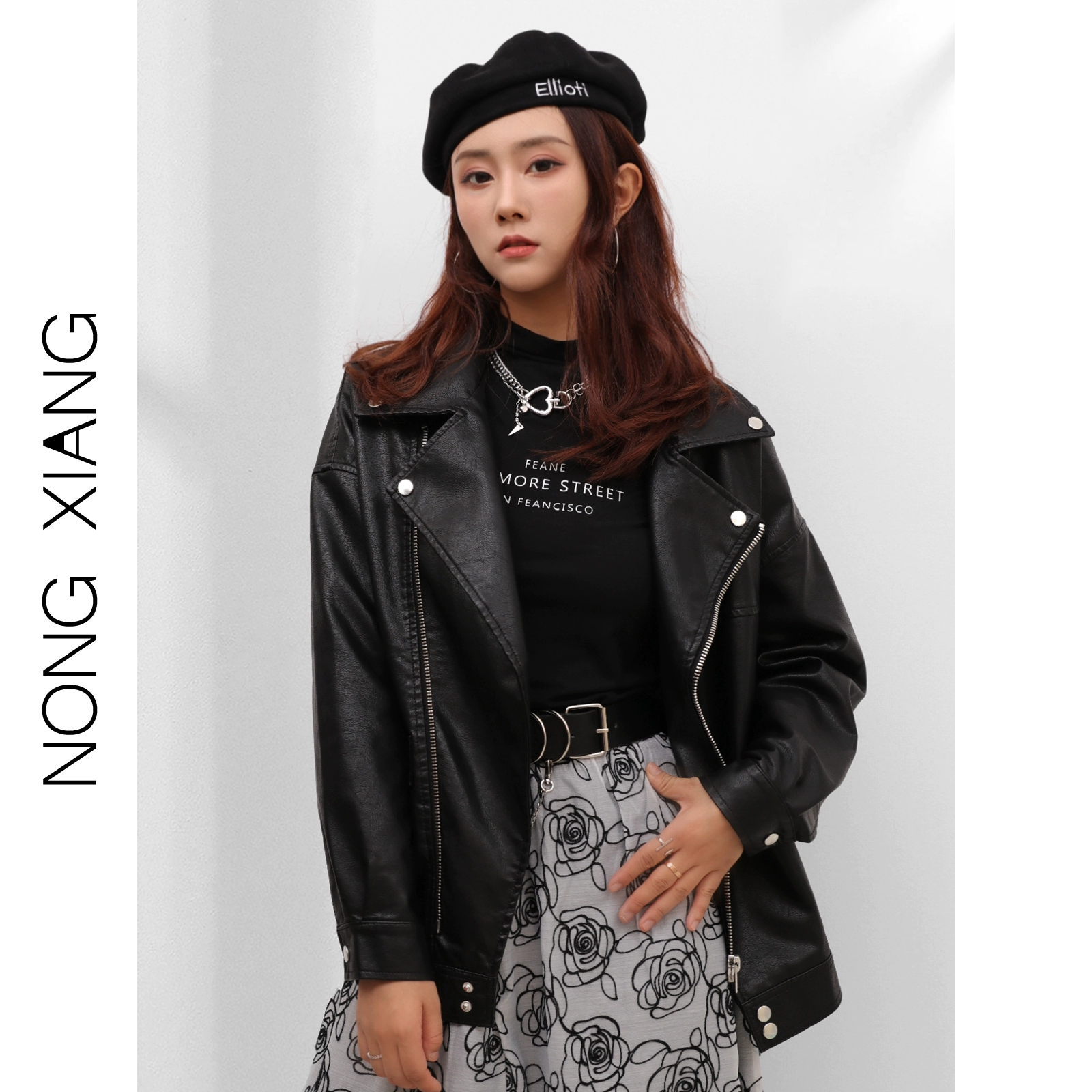 | nameOriginal | Black thickened and velvet short motorcycle jacket women's leather jacket 2024 autumn new Korean style loose retro jacket popular |
