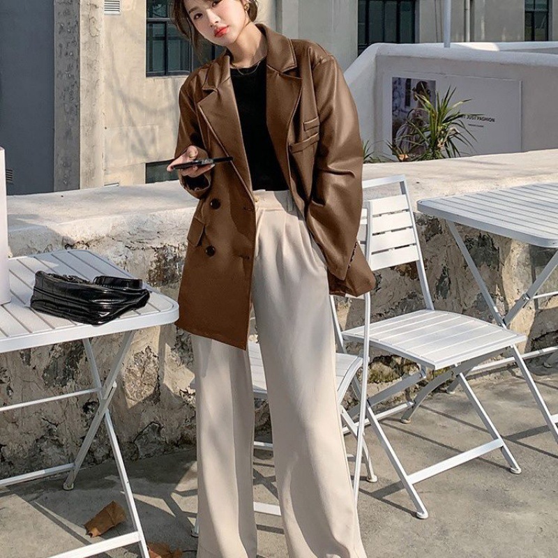 Black thickened leather suit jacket women’s autumn and winter 2023 new high-grade PU leather motorcycle clothing women’s coat overcoat
