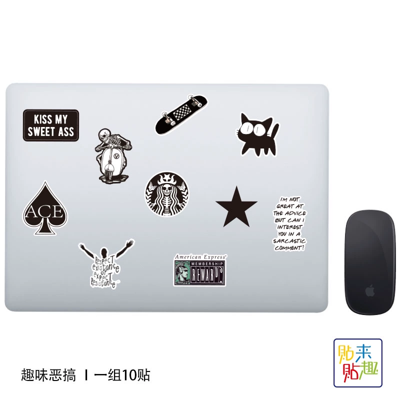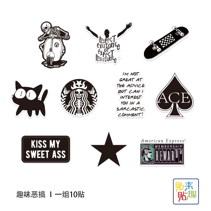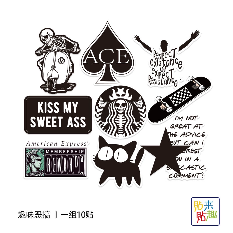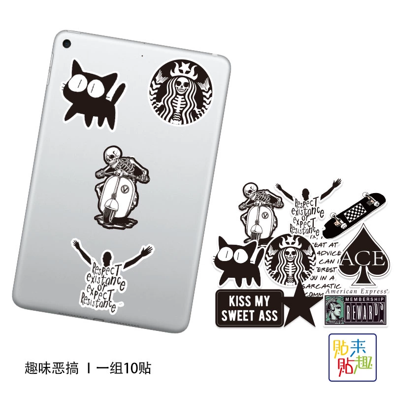 | nameOriginal | Black trendy fun spoof tablet laptop sticker personalized skateboard guitar motorcycle helmet sticker waterproof |