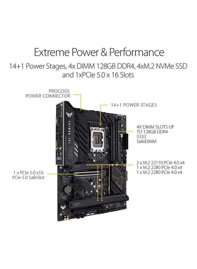 Introducing the Z690-PLUS WIFI D4, a high-performance motherboard designed to support up to 128 GB of memory. This model comes in a sleek black color and has a model number of 90MB18V0-M0EAY0. With its advanced features and capabilities, this motherboard is perfect for anyone looking to build a powerful and reliable computer system.
