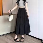 Black Umbrella Skirt Skirt Women’s Small Summer 2024 New Draped Midi Skirt High Waist White Character Skirt