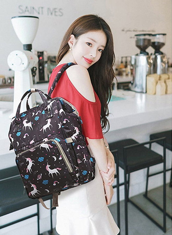 The black color of the bag adds a touch of sophistication and makes it easy to match with any outfit. Whether you’re running errands or going on a family vacation, this Unicorn Printed Waterproof Multifunctional Large Capacity Diaper Bag is the perfect accessory for any parent.