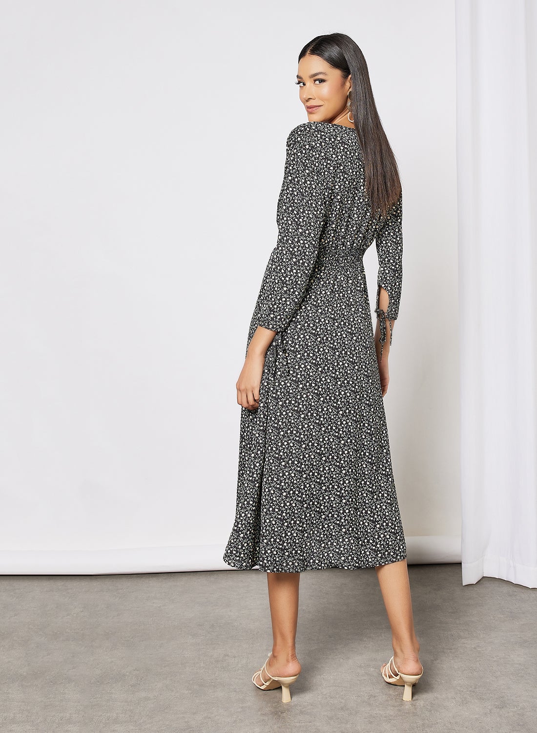 | nameOriginal | Ditsy Print V-Neck Dress Black |
