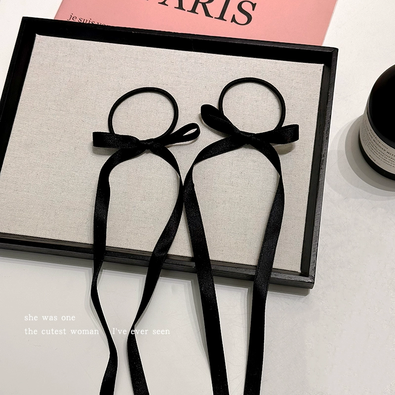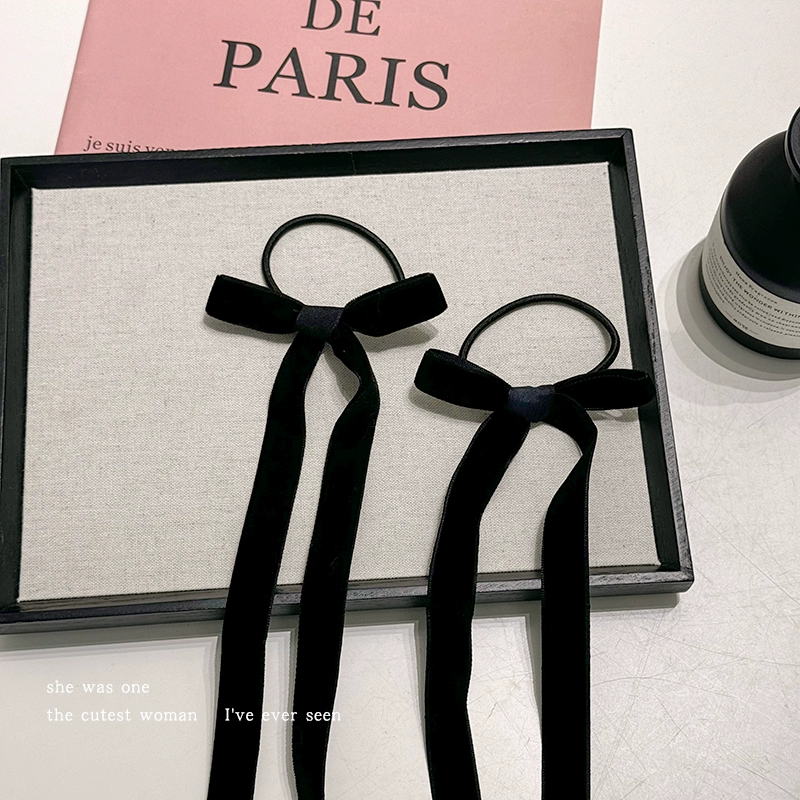 | nameOriginal | Black velvet bow streamer hairband ballet style headband female double ponytail hairband spring and summer rubber band headwear |