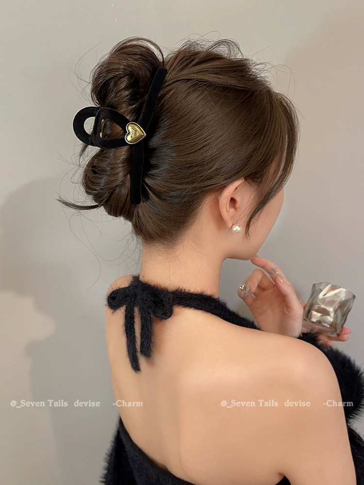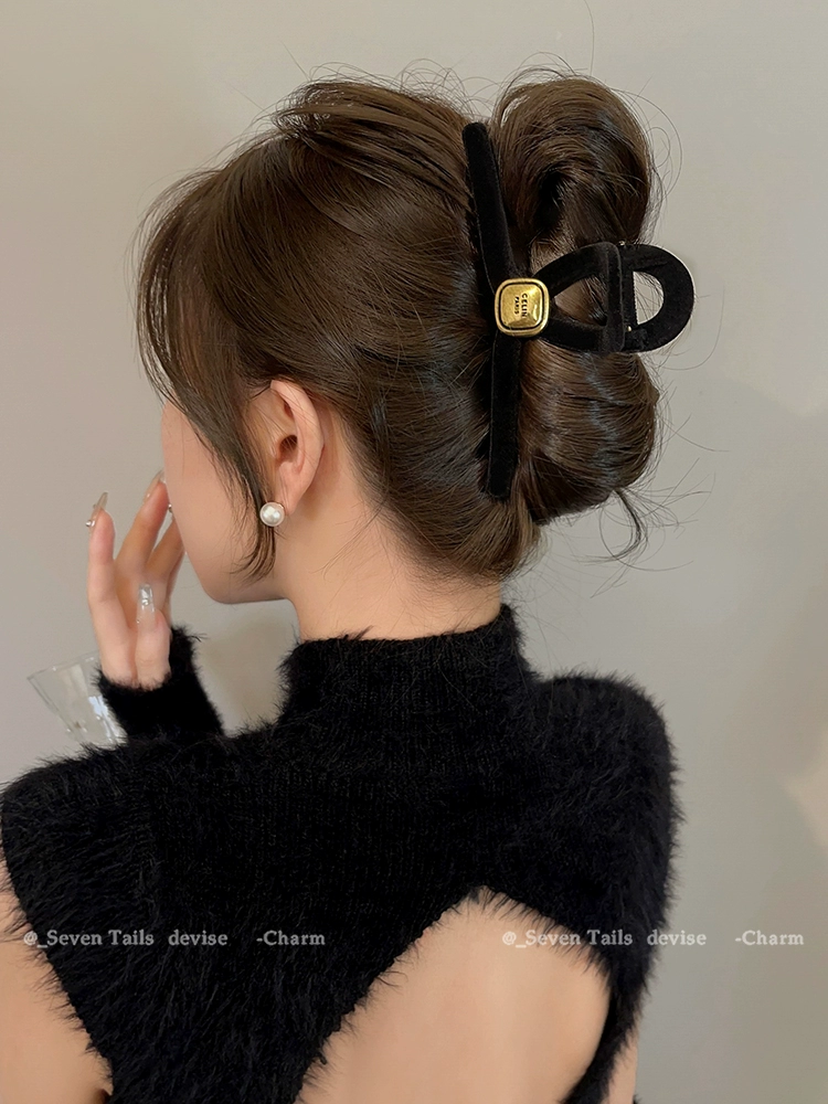 Black Velvet Love Grappling Clip Autumn and Winter Large Hair Clip Women's 2024 New Style Shark Clip Headwear on the Back of the Head
