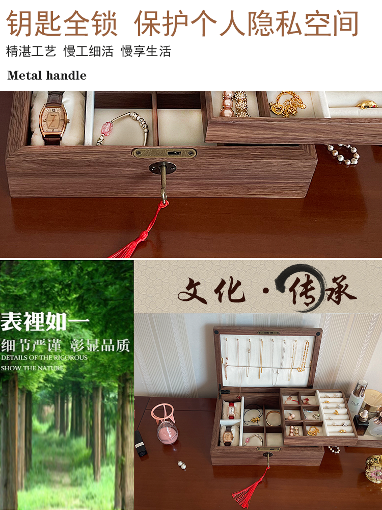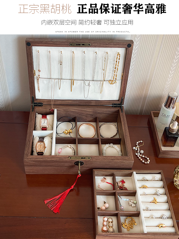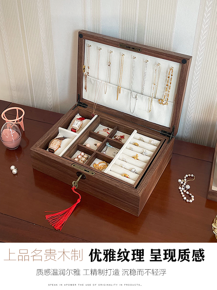| nameOriginal | Black walnut high-end solid wood jewelry storage box with lock large-capacity jewelry box ring necklace jewelry box luxury |