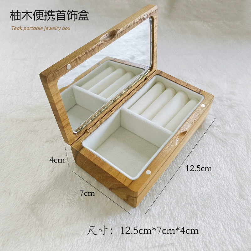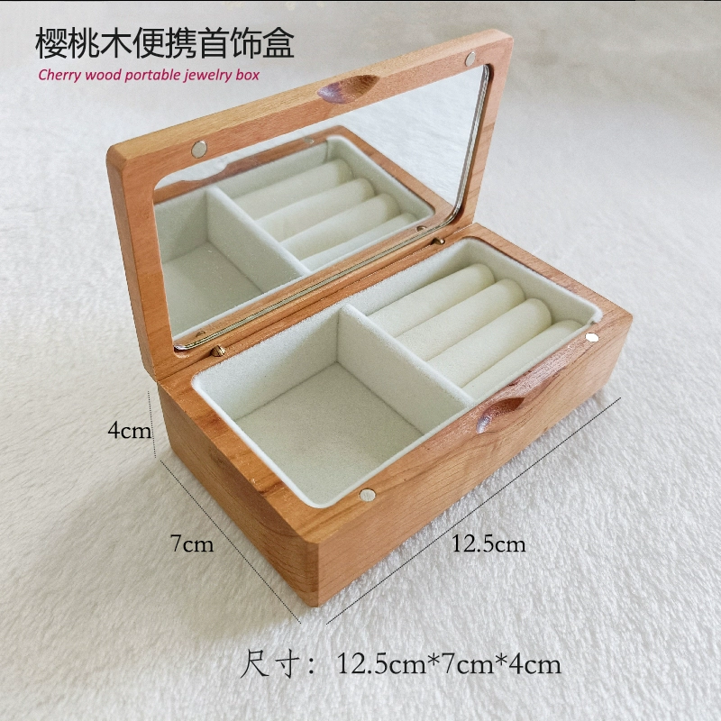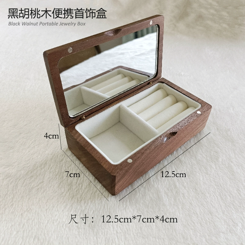 | nameOriginal | Black walnut solid wood jewelry box mirror storage box velvet high-end jewelry earrings earrings ring portable small box |