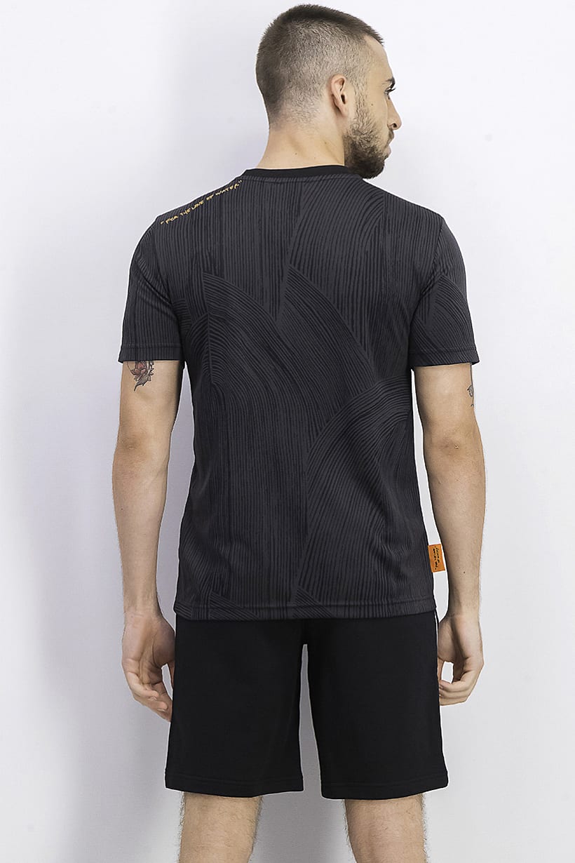 | descriptionOriginal | Thickness : Medium, Sportswear Type : T-Shirt, Occasion : Sport, Care : Machine washable, Type of Neckline & Collar : Crew neckline , Type of Hem : Straight hem , Type of Sleeve : Short sleeve , Type of Sport : Training, Fabrics : 5% Elastane, 95% Polyester, Pattern & Print : Allover print, Jacquard, Types of Closures : Pullover, Color Family : Black, Ideal For : Men, |
