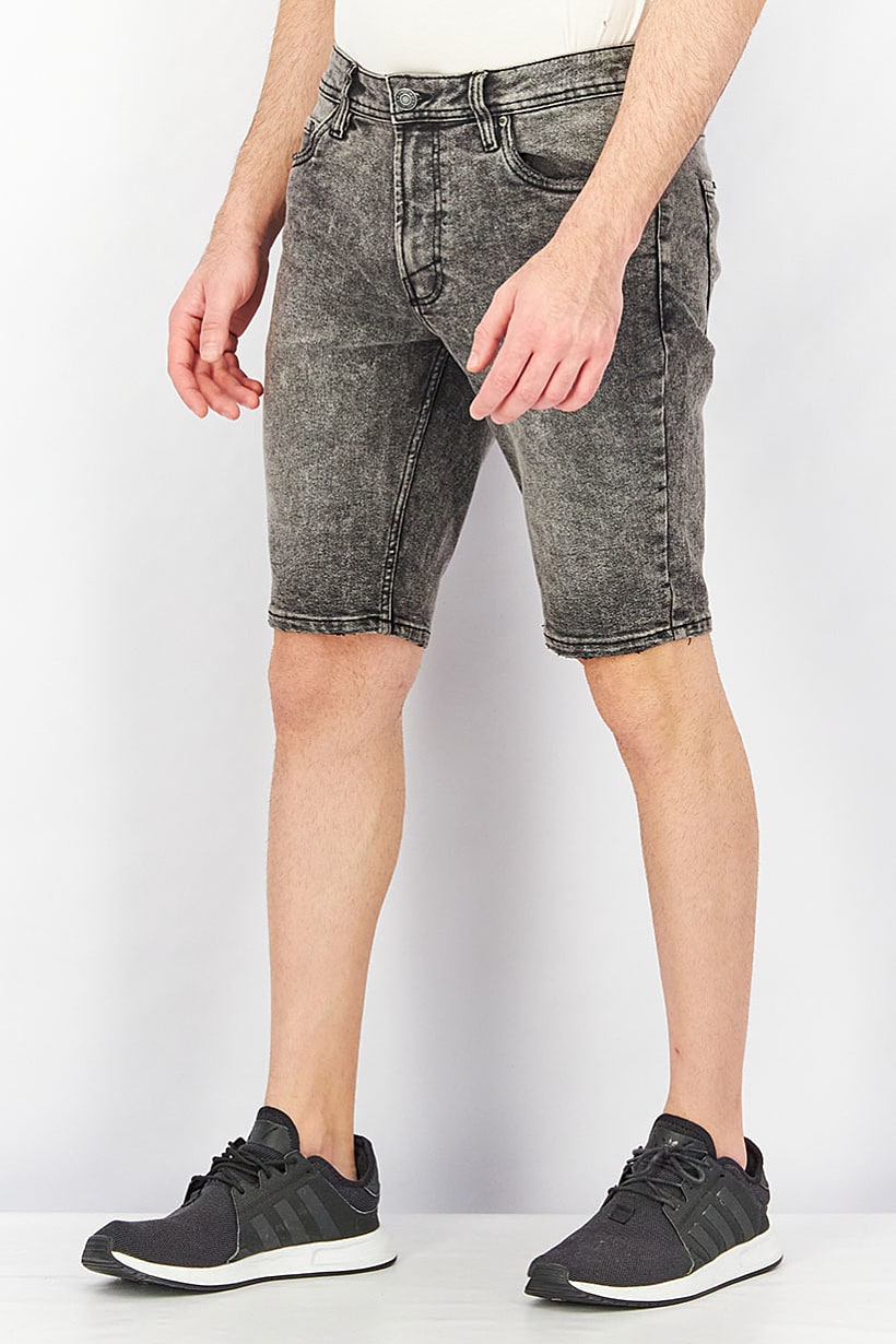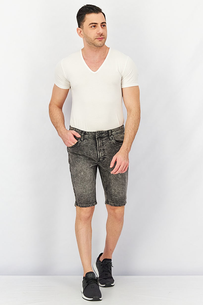 Men Slim Fit Five Pocket Denim Short, Black Washed