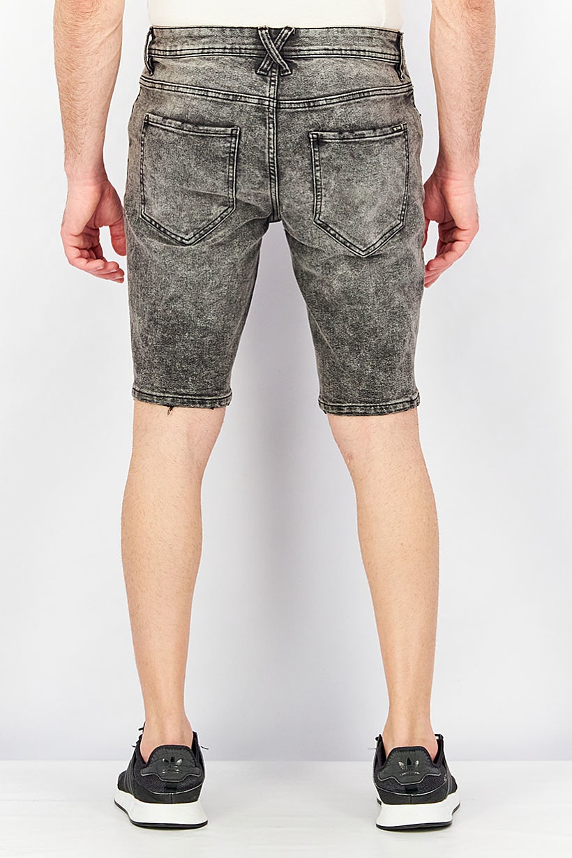 Black Washed Men’s Slim Fit Denim Shorts with Five Pockets.
