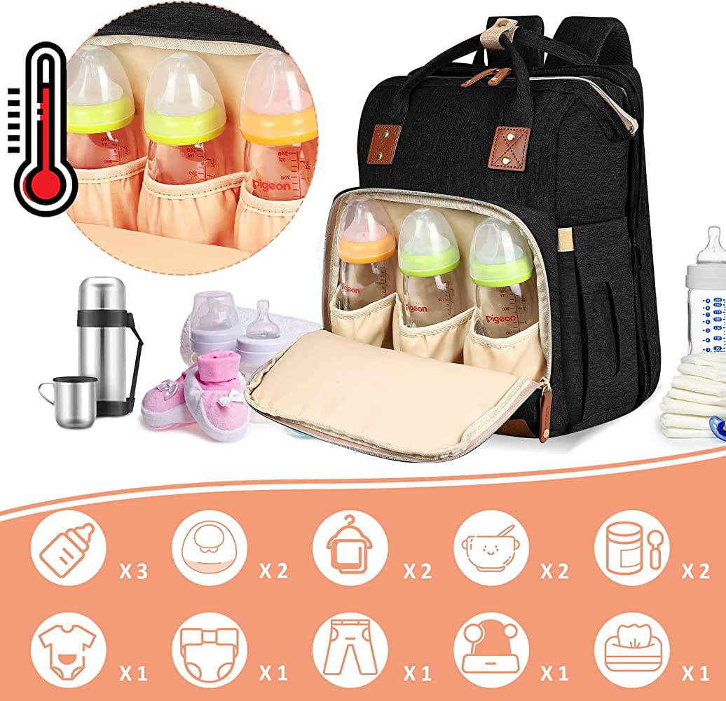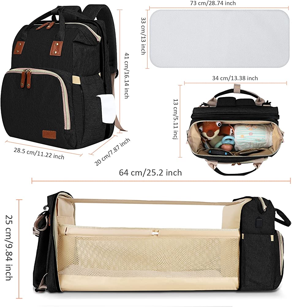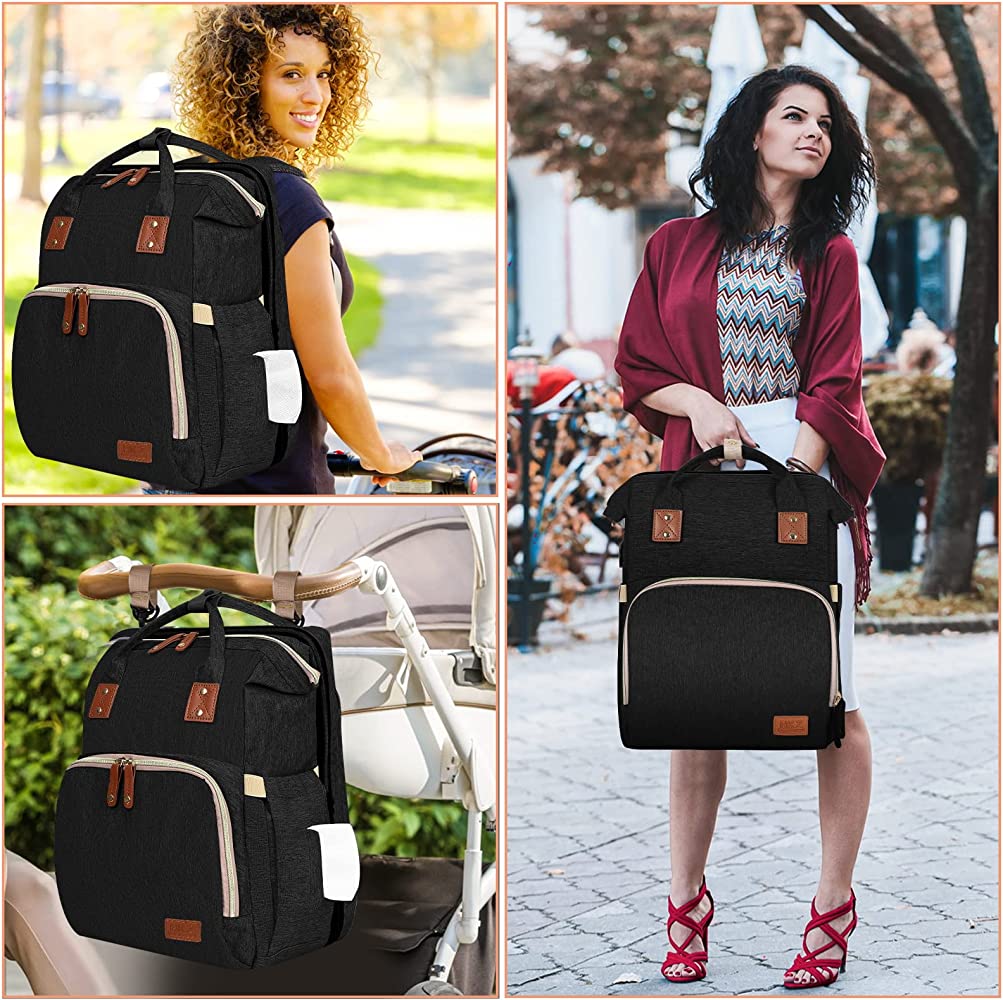 HKZ Diaper Bag Backpack 5 in 1 Baby Diaper Bags for Girls and Boys,Travel Foldable Baby Multifunction Large Capacity Baby with USB Charging Port,Waterproof (Black)