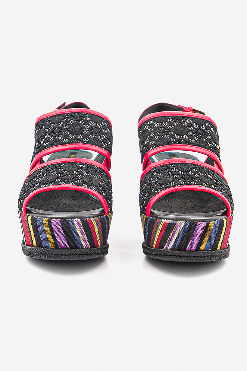 | descriptionOriginal | Heel Height : 3" / 7.6 cm, Heel Style : Wedge heel, Ideal For : Women, Shoe Closure : Adjustable buckle closure, Shoe Width : Standard, Sole Material : Synthetic sole, Toe Style : Open toe, Occasion : Casual, Shoe Material : Fabric, Textile, Color Family : Black, |