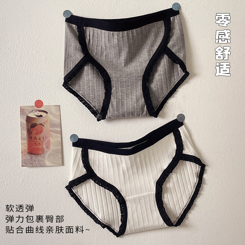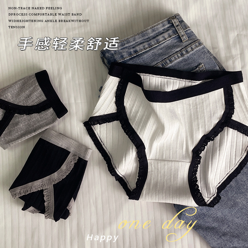 | nameOriginal | Black, white and gray underwear women's pure cotton sweet student mid-waist comfortable sheath less women's belly contracting hip lifting plus size briefs |