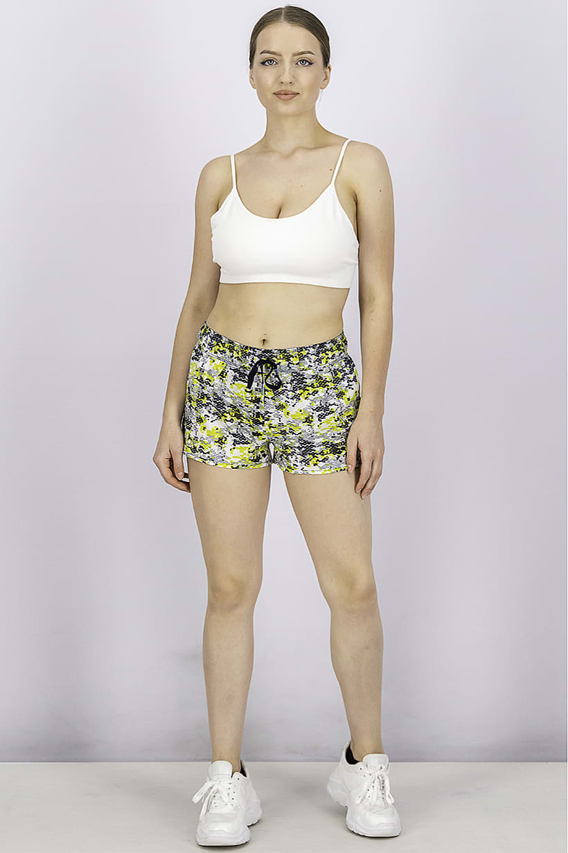 | descriptionOriginal | Care : Machine washable, Fit : Sportswear Fit, Ideal For : Women, Size shown : US, Type of Short : Sport short, Types of Hem : Straight hem, Bottom Closure : Drawstring, Disclaimer : Product color may slightly vary due to photographic lighting sources or your monitor settings., Fabrics : 100% Polyester, Pattern & Print : Allover print, Color Family : Black, Bottom Hem : Straight, Thickness : Light, Type of Sport : Running, Sportswear Type : Shorts, |