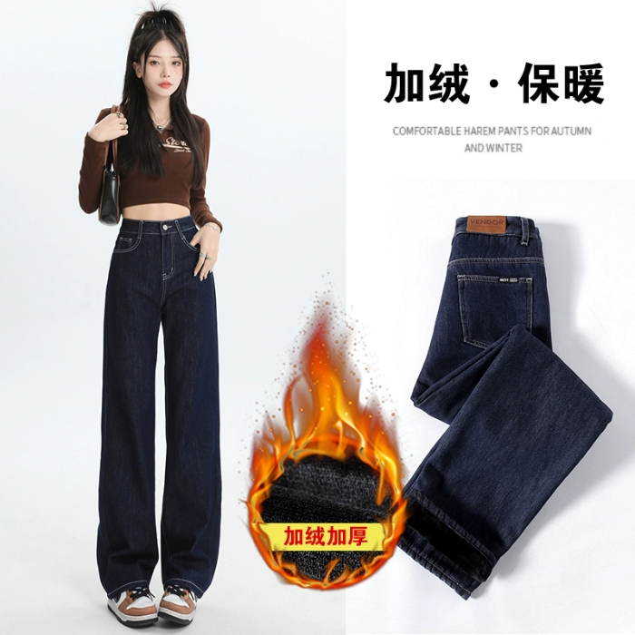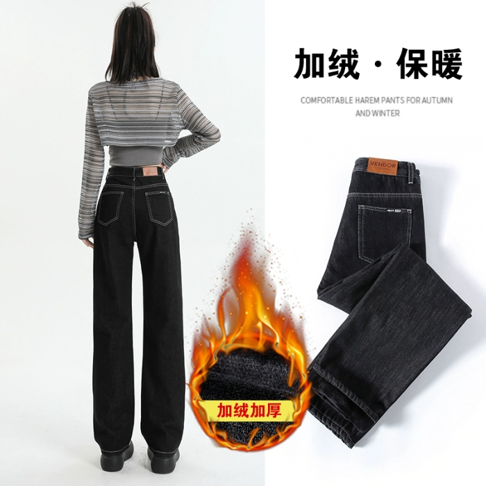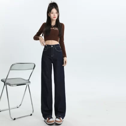 Black wide -leg spring and autumn high waist vertical sensory narrow version jeans