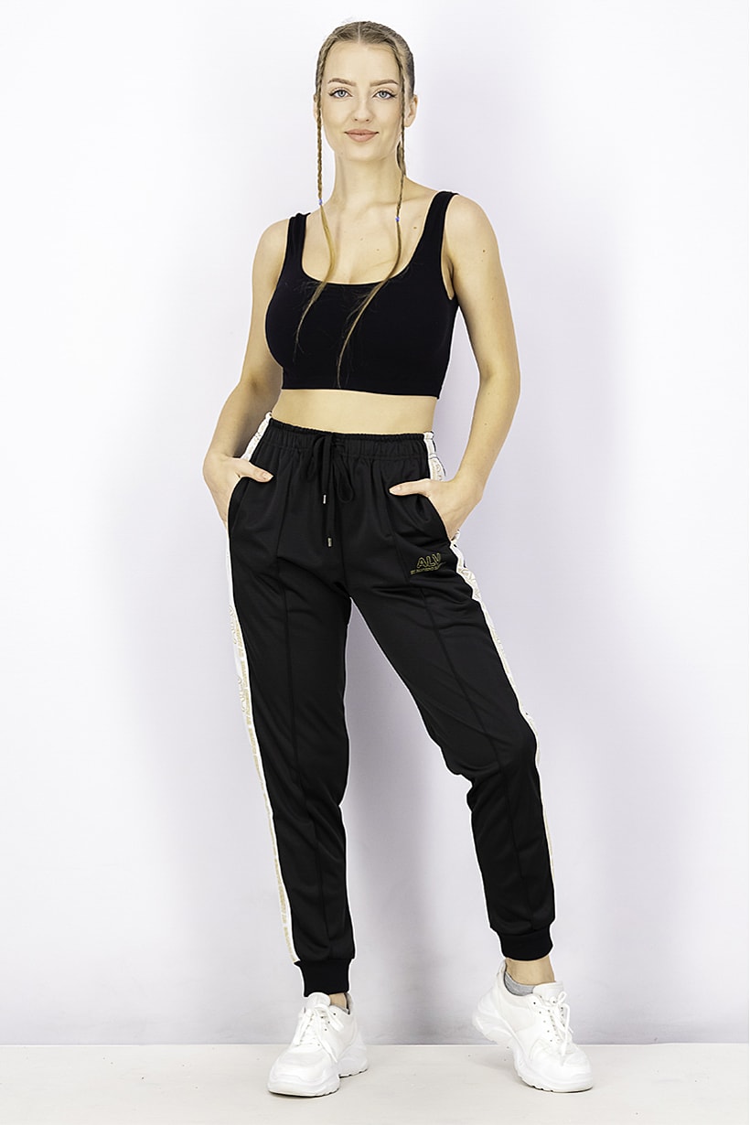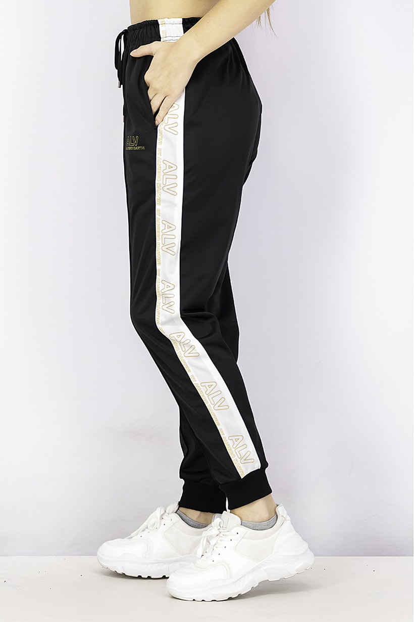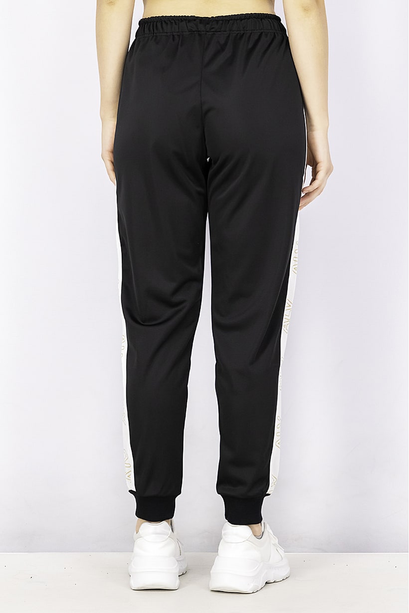 This product is a pair of women’s track pants with an elasticized bottom hem and a drawstring closure. It has a sportswear fit and is made of 100% polyester fabric with a colorblock pattern and print in black. It is ideal for outdoor sports and is machine washable. Please note that the product color may vary slightly due to photographic lighting sources or monitor settings. The size shown is international and the thickness is light.