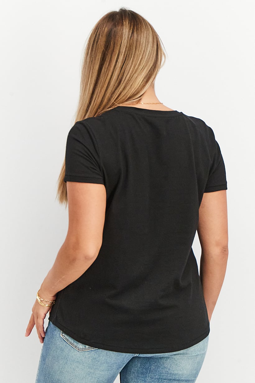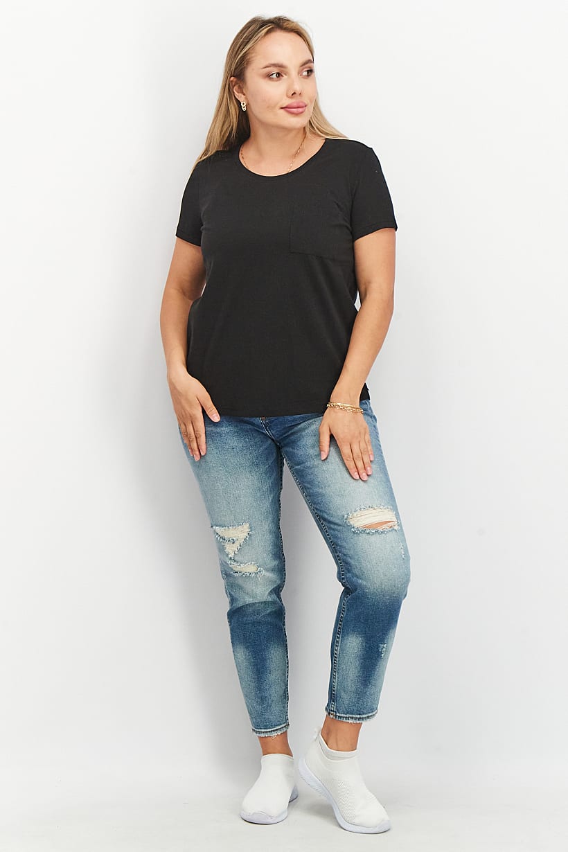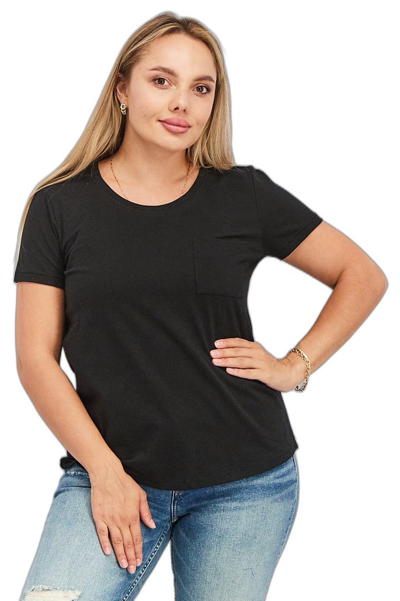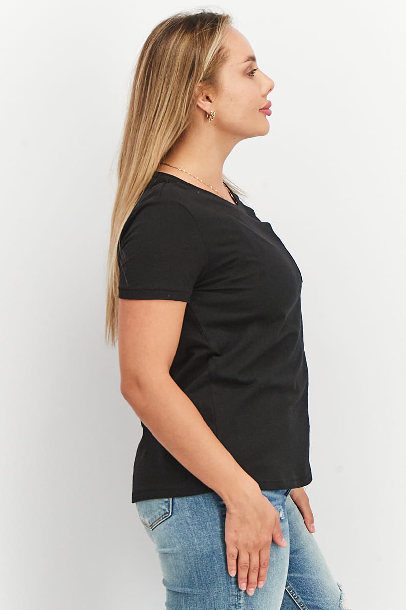 Black Women’s Short Sleeve Crew Neck Top with Pocket.