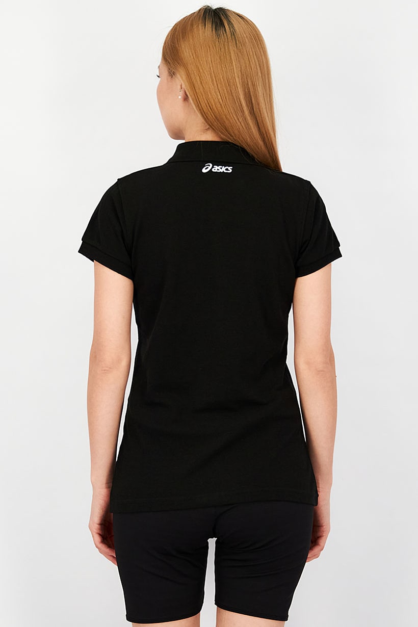 This polo shirt is designed for training and has a sportswear fit with a straight bottom hem. It is made of a light fabric blend of 95% cotton and 5% polyester, and is machine washable for easy care. The brand logo is featured as a pattern and print on the shirt. Please note that the product color may vary slightly due to photographic lighting sources or monitor settings. The size shown is in US measurements and the color family is black.