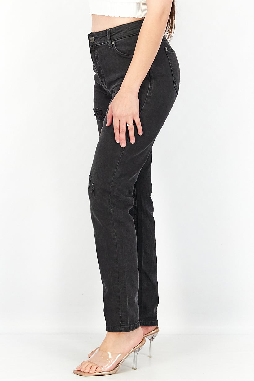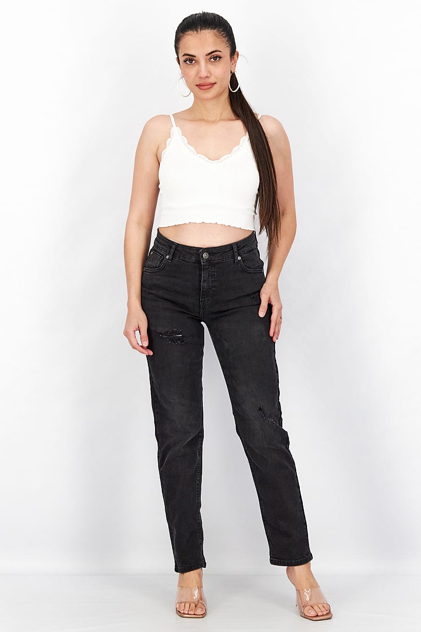 Bottom Hem : Straight, Care : Machine washable, Fit : Slim fit, Ideal For : Women, Leg Style : Skinny, Size shown : EU, Stretch Type : Stretchable, Bottom Closure : Zipper fly, Bottom Style/Pattern : Five pocket style, Fabrics : 98% Cotton, 2% Elastane, Occasion : Casual, Pattern & Print : Rip, Color Family : Black,